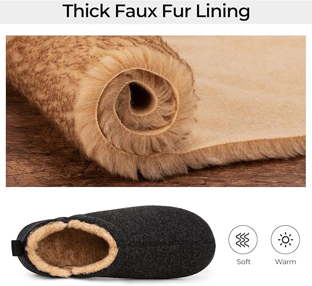 - Faux Fur Lining: The inside of the slippers is lined with plush faux fur, offering a soft, comfortable. The lining not only provides warmth but also wicks moisture away, helping to keep you dry and comfortable throughout the day.