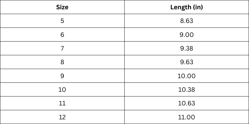 Size Chart (Inches):