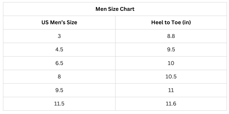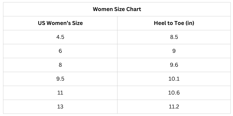 Size Chart (Inches):