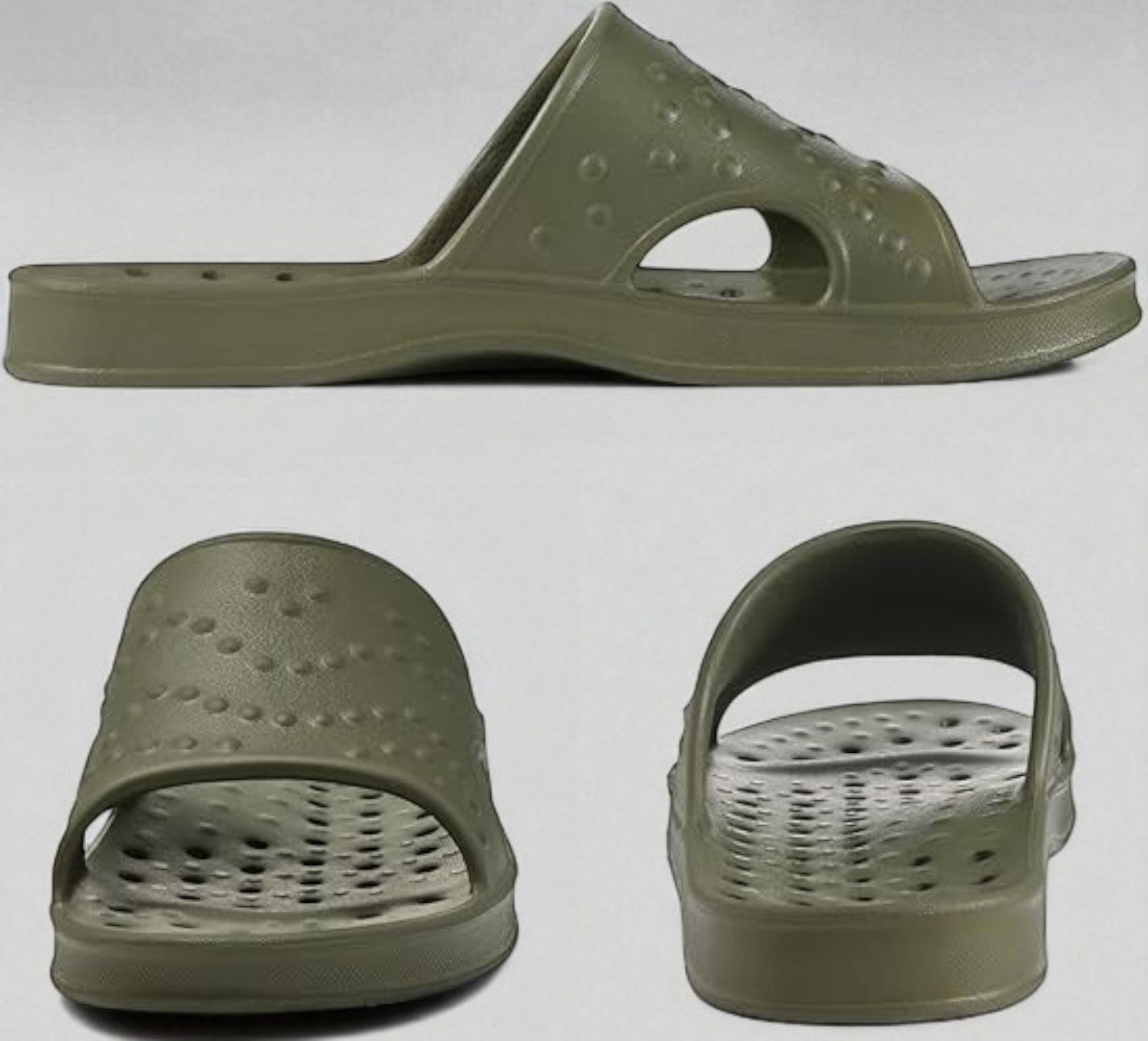 The Drain Hole Footwear design is a core feature of these slides. Small holes across the sole enable water to flow out quickly, which prevents pooling inside the sandal and helps them dry faster after use.