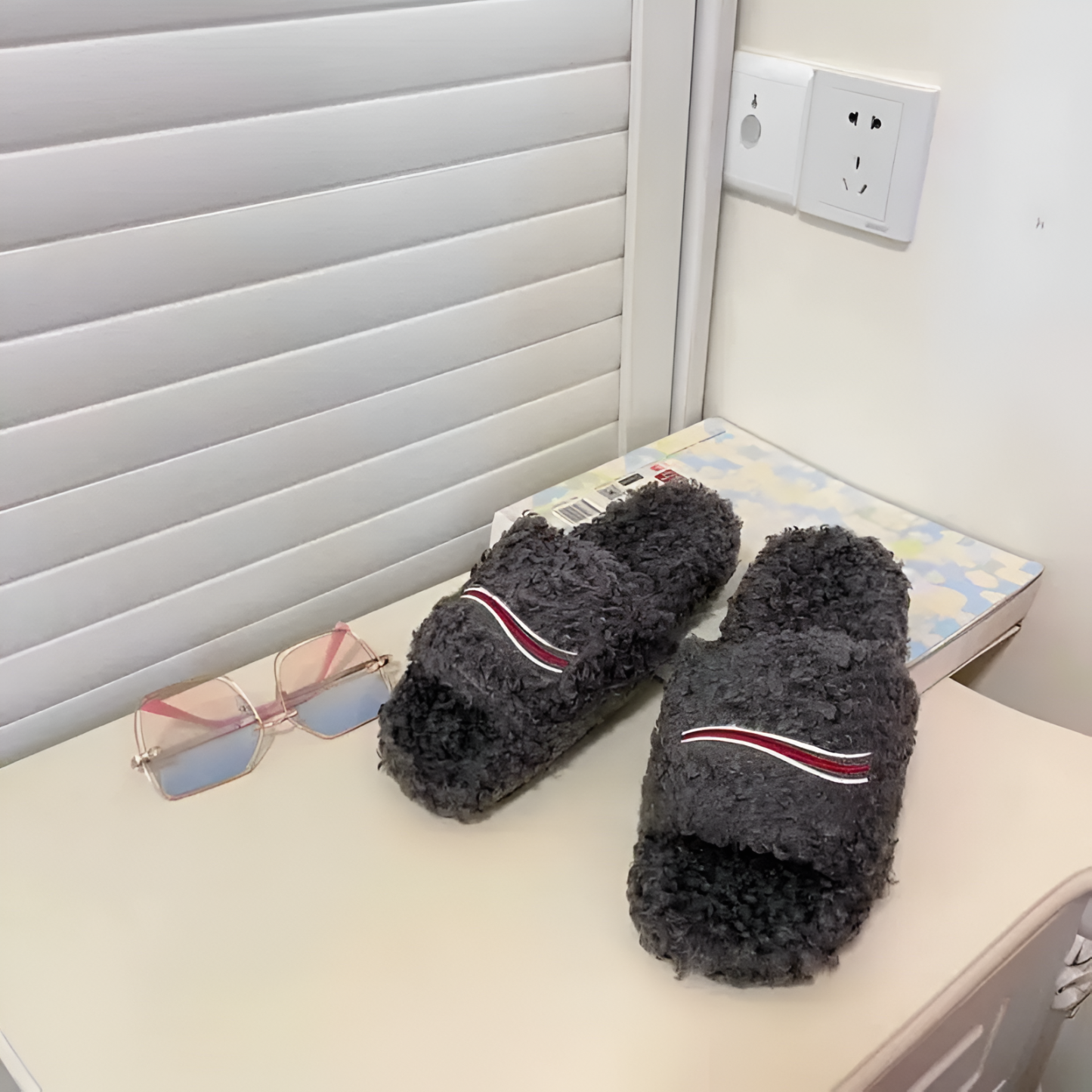Unisex Outdoor Slide Furry Slippers For Winter are designed for everyday wear with an easy slip-on slide shape that works in and out of the house. The upper has a textured, fuzzy-style finish with a simple letter detail, giving the slides a sporty look that pairs well with casual outfits. Because the design is open-back, Unisex Outdoor Slide Slippers are quick to put on when you are moving between rooms, stepping out for short errands, or heading to the gym or locker area. The platform profile is made to feel steady underfoot, and the sole is intended for indoor surfaces as well as short outdoor paths.